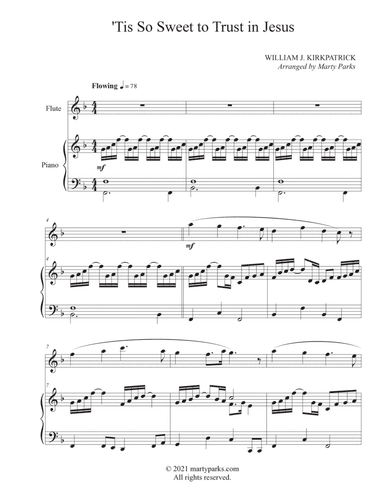 Piano,Trumpet - Level 3 - Digital Download SKU: A0.1405045 Composed by William J. Kirkpatrick. Arranged by Marty Parks. Christian,Religious,Sacred,Spiritual. Score and part. 9 pages. Martyparks.com #988082. Published by martyparks.com (A0.1405045). Here's a soulful gospel setting for Trumpet and Piano that features a light swing throuhgout. It's just right for services on Pentecost Sunday, or at other times when the Holy Spirit is emphasized. Intermediate difficulty level. (Full score and separate Trumpet part included.). This product was created by a member of ArrangeMe, Hal Leonard's global self-publishing community of independent composers, arrangers, and songwriters. ArrangeMe allows for the publication of unique arrangements of popular titles and original compositions from a variety of voices and backgrounds. The length, difficulty, and retail pricing are determined solely by the discretion of the person who arranged or composed it. About Digital Downloads Digital Downloads are downloadable sheet music files that can be viewed directly on your computer, tablet or mobile device. Once you download your digital sheet music, you can view and print it at home, school, or anywhere you want to make music, and you don’t have to be connected to the internet. Just purchase, download and play! PLEASE NOTE: Your Digital Download will have a watermark at the bottom of each page that will include your name, purchase date and number of copies purchased. You are only authorized to print the number of copies that you have purchased. You may not digitally distribute or print more copies than purchased for use (i.e., you may not print or digitally distribute individual copies to friends or students).