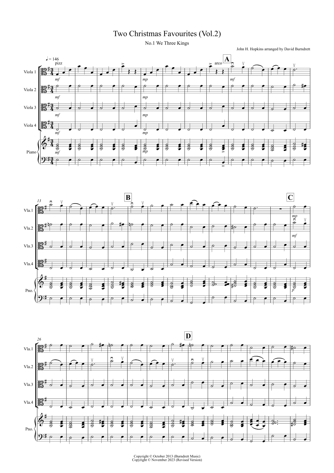 2 Christmas Favourites for Viola Quartet (volume two) (arr. David Burndrett)