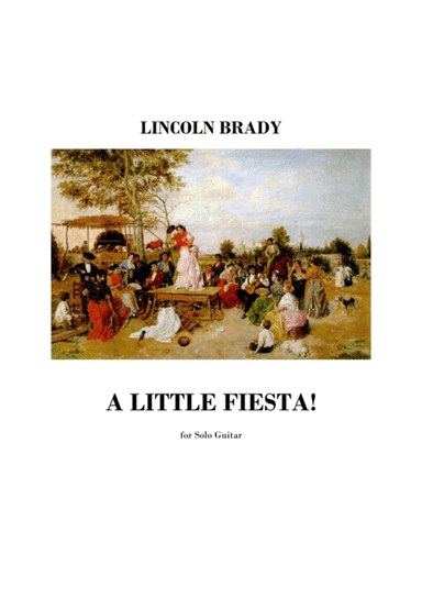 Guitar - Level 3 - Digital Download SKU: A0.1131475 By LINCOLN BRADY. By LINCOLN BRADY. Arranged by LINCOLN BRADY. Classical,Instructional,Latin,Multicultural,World. Full Performance. Duration 133. LINCOLN BRADY #731690. Published by LINCOLN BRADY (A0.1131475). "A Little Fiesta!" (Una Fiesta Pequena!) Composed by Lincoln Brady in a classic Spanish style. Early Intermediate standard. This product was created by a member of ArrangeMe, Hal Leonard’s global self-publishing community of independent composers, arrangers, and songwriters. ArrangeMe allows for the publication of unique arrangements of both popular titles and original compositions from a wide variety of voices and backgrounds. About MP3s at Sheet Music Plus You can now purchase MP3s for download from Sheet Music Plus! You'll find a variety of MP3s from instrumental play alongs to choral accompaniment tracks to great new music from emerging and established artists. After purchase, you can download your MP3 from your Sheet Music Plus Digital Library - no software installation is necessary! You can also listen to your MP3 at any time in your Digital Library.