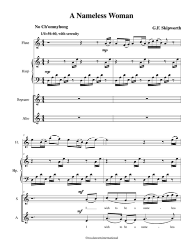 Voice Duet Mezzo-Soprano Voice - Level 4 - Digital Download SKU: A0.1329080 Composed by G.F Skipworth. 20th Century,Classical,Multicultural,World. 9 pages. George Skipworth #917051. Published by George Skipworth (A0.1329080). On a poem by Vietnamese poet No Ch'omnyhong, set for soprano & mezzo, or solo soprano, 2 part SA chorus - 2 to 3 minutes, difficulty medium advanced. This product was created by a member of ArrangeMe, Hal Leonard’s global self-publishing community of independent composers, arrangers, and songwriters. ArrangeMe allows for the publication of unique arrangements of both popular titles and original compositions from a wide variety of voices and backgrounds. About Digital Downloads Digital Downloads are downloadable sheet music files that can be viewed directly on your computer, tablet or mobile device. Once you download your digital sheet music, you can view and print it at home, school, or anywhere you want to make music, and you don’t have to be connected to the internet. Just purchase, download and play! PLEASE NOTE: Your Digital Download will have a watermark at the bottom of each page that will include your name, purchase date and number of copies purchased. You are only authorized to print the number of copies that you have purchased. You may not digitally distribute or print more copies than purchased for use (i.e., you may not print or digitally distribute individual copies to friends or students).