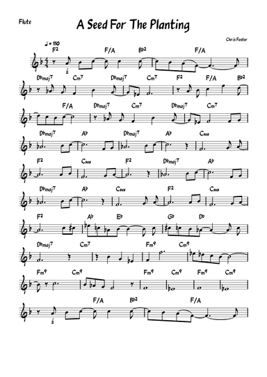 C Instrument - Level 2 - Digital Download SKU: A0.1357495 By Chris Foster. By Chris Foster. Arranged by Chris Foster. Classical,Contemporary,Jazz,New Age,Spiritual. Lead Sheet / Fake Book. 2 pages. Chris Foster Songs #942041. Published by Chris Foster Songs (A0.1357495). Flute part for "A Seed for the planting." Full score avialable. This product was created by a member of ArrangeMe, Hal Leonard’s global self-publishing community of independent composers, arrangers, and songwriters. ArrangeMe allows for the publication of unique arrangements of both popular titles and original compositions from a wide variety of voices and backgrounds. About Digital Downloads Digital Downloads are downloadable sheet music files that can be viewed directly on your computer, tablet or mobile device. Once you download your digital sheet music, you can view and print it at home, school, or anywhere you want to make music, and you don’t have to be connected to the internet. Just purchase, download and play! PLEASE NOTE: Your Digital Download will have a watermark at the bottom of each page that will include your name, purchase date and number of copies purchased. You are only authorized to print the number of copies that you have purchased. You may not digitally distribute or print more copies than purchased for use (i.e., you may not print or digitally distribute individual copies to friends or students).