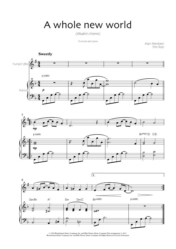 A Whole New World (aladdin's Theme) (arr. Robin Hood Editions)