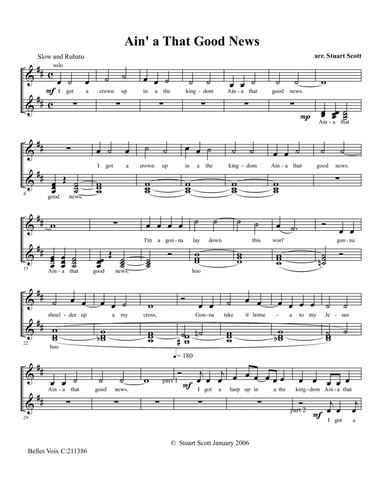 SATB choir - Beginning SKU: GI.WLG106 SATB. Composed by Traditional Spiritual. Arranged by Pat Messick. Lynne Gackle. Classical. Octavo. 8 pages. Walton Music #WLG106. Published by Walton Music (GI.WLG106). UPC: 073999810295. English. Text by Traditional Spiritual.Written for middle school or small high school choirs, this is an appealing arrangement of a well known and well loved traditional spiritual.