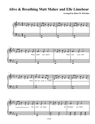 Choral Choir (SATB) - Level 3 - Digital Download SKU: A0.1097992 By Matt Maher. By Elle Limebear and Matt Maher. Arranged by Dena Gibson. Christian. Octavo. 9 pages. Dena Gibson #681957. Published by Dena Gibson (A0.1097992). This is a fun and uplifting contemporary Christian song arranged for SATB choir. This product was created by a member of ArrangeMe, Hal Leonard's global self-publishing community of independent composers, arrangers, and songwriters. ArrangeMe allows for the publication of unique arrangements of popular titles and original compositions from a variety of voices and backgrounds. The length, difficulty, and retail pricing are determined solely by the discretion of the person who arranged or composed it. About Digital Downloads Digital Downloads are downloadable sheet music files that can be viewed directly on your computer, tablet or mobile device. Once you download your digital sheet music, you can view and print it at home, school, or anywhere you want to make music, and you don’t have to be connected to the internet. Just purchase, download and play! PLEASE NOTE: Your Digital Download will have a watermark at the bottom of each page that will include your name, purchase date and number of copies purchased. You are only authorized to print the number of copies that you have purchased. You may not digitally distribute or print more copies than purchased for use (i.e., you may not print or digitally distribute individual copies to friends or students).