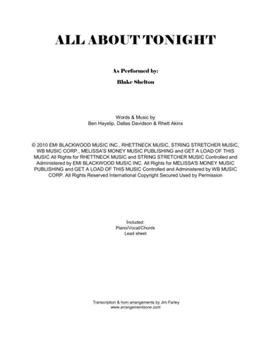 Digital sheet music for voice, piano or guitarNOTE: chords, lead sheet indications and lyrics may be included (please, check the first page above before to buy this item to see what's included)Publisher: Hal LeonardContributors to this music title:Ben Hayslip (writer)Dallas Davidson (writer)Rhett Akins (writer)This item includes: PDF (digital sheet music to download and print), Interactive Sheet Music (for online playback, transposition and printing). You can transpose this music in any key.Instrumentation:voice, piano or guitarSkill Level:intermediateGenre:country, popPages:5