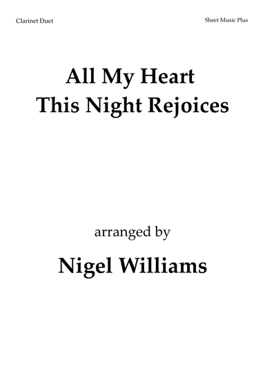 Clarinet Duet Clarinet - Level 3 - Digital Download SKU: A0.763724 Composed by Johann G Ebeling. Arranged by Nigel Williams. Baroque,Christmas,Concert,Instructional. 2 scores. 6 pages. Nigel Williams #6350383. Published by Nigel Williams (A0.763724). This popular Christmas carol is ideal repertoire for church music groups and high school students over the Christmas holiday season. The score downloads with parts attached. Enjoy browsing my extensive selection of woodwind duet arrangements available for download on SMP. This product was created by a member of ArrangeMe, Hal Leonard’s global self-publishing community of independent composers, arrangers, and songwriters. ArrangeMe allows for the publication of unique arrangements of both popular titles and original compositions from a wide variety of voices and backgrounds. About Digital Downloads Digital Downloads are downloadable sheet music files that can be viewed directly on your computer, tablet or mobile device. Once you download your digital sheet music, you can view and print it at home, school, or anywhere you want to make music, and you don’t have to be connected to the internet. Just purchase, download and play! PLEASE NOTE: Your Digital Download will have a watermark at the bottom of each page that will include your name, purchase date and number of copies purchased. You are only authorized to print the number of copies that you have purchased. You may not digitally distribute or print more copies than purchased for use (i.e., you may not print or digitally distribute individual copies to friends or students).