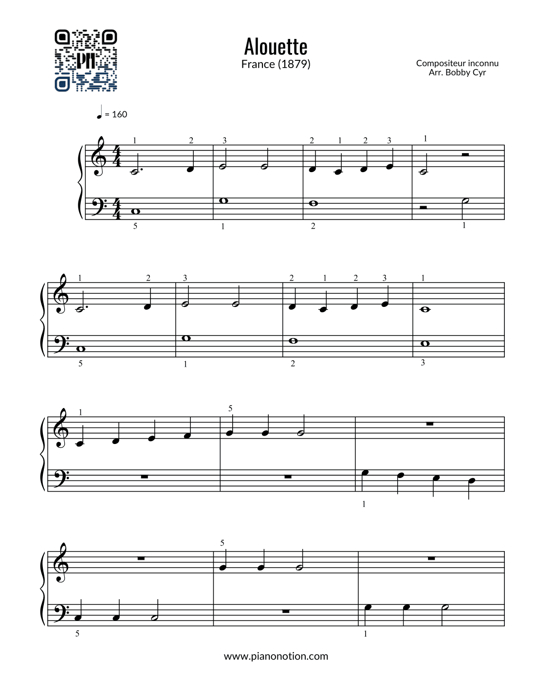 Alouette - Comptines (piano facile) (arr. Bobby Cyr - Piano Notion)