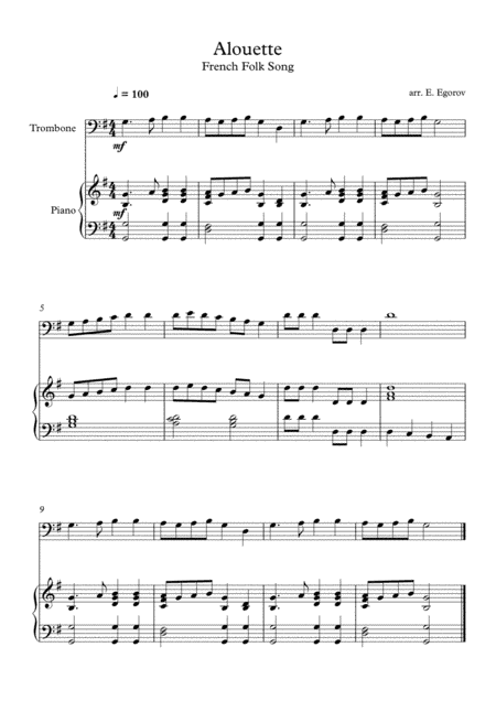 Alouette, French Folk Song, For Trombone & Piano (arr. Eugene Egorov)