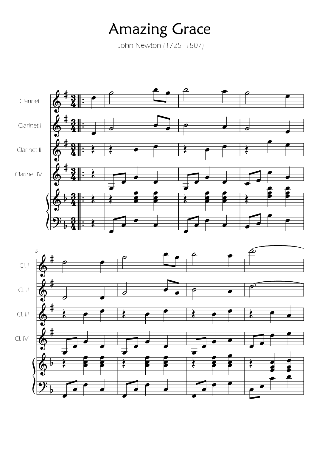 Amazing Grace - Clarinet Quartet w/ Piano Accompaniment (arr. Ygor Nunes)