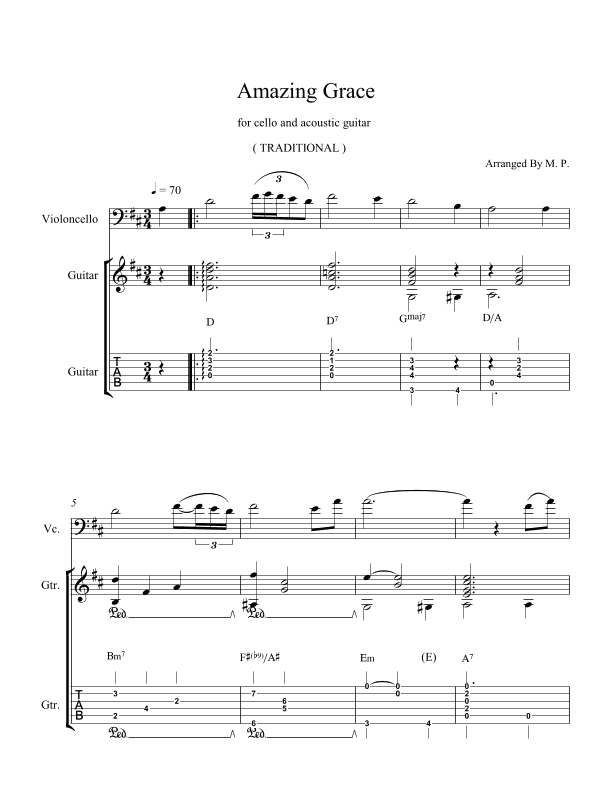 Amazing Grace - For Cello And Acoustic Guitar (arr. Milorad Petrovic)