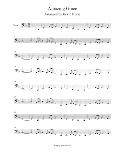 Digital Sheet Music for Amazing Grace - Tuba by Traditional, Sean O'Loughlin scored for Concert Band; id:420848