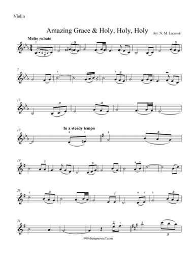 Flute,Piano - Level 4 - Digital Download SKU: A0.647261 Composed by Nick Lacanski. Arranged by Nick Lacanski. Praise & Worship,Sacred. Score and part. 8 pages. Theupperstaff #442931. Published by theupperstaff (A0.647261). This arrangement begins in a soulful way. When the piano enters, many "new" harmonies give it a jazz feel. It builds momentum with the introduction to Holy, Holy, Holy and ends with power. This is perfect for your upcoming service as an offertory or processional. This product was created by a member of ArrangeMe, Hal Leonard's global self-publishing community of independent composers, arrangers, and songwriters. ArrangeMe allows for the publication of unique arrangements of popular titles and original compositions from a variety of voices and backgrounds. The length, difficulty, and retail pricing are determined solely by the discretion of the person who arranged or composed it. About Digital Downloads Digital Downloads are downloadable sheet music files that can be viewed directly on your computer, tablet or mobile device. Once you download your digital sheet music, you can view and print it at home, school, or anywhere you want to make music, and you don’t have to be connected to the internet. Just purchase, download and play! PLEASE NOTE: Your Digital Download will have a watermark at the bottom of each page that will include your name, purchase date and number of copies purchased. You are only authorized to print the number of copies that you have purchased. You may not digitally distribute or print more copies than purchased for use (i.e., you may not print or digitally distribute individual copies to friends or students).