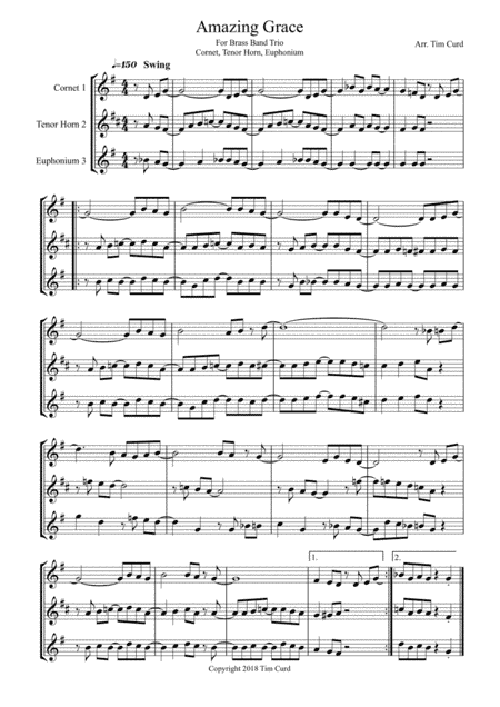 Amazing Grace. Trio for Cornet, Tenor Horn and Euphonium (arr. Tim Curd.)