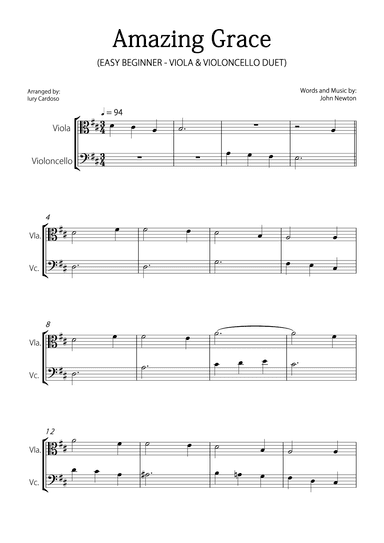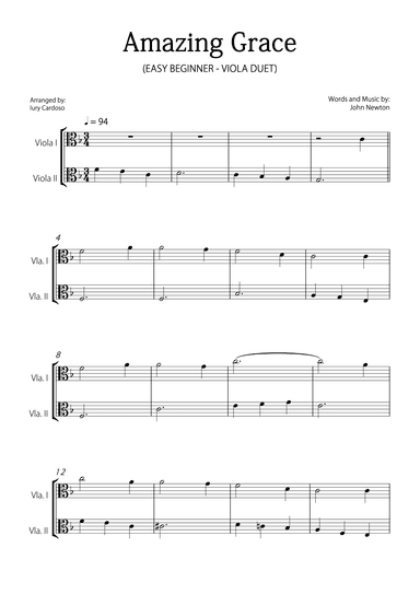 Viola Duet Viola - Level 2 - Digital Download SKU: A0.1160854 Composed by Early American Melody. Arranged by Miriam Troxler. Christian,Praise & Worship,Religious,Sacred,Spiritual. Score. 2 pages. Miriam Troxler #761165. Published by Miriam Troxler (A0.1160854). Two violists can enjoy this arrangement for church or recital performance. Third position is required for one viola part. Compatible with the violin duet and cello duet for mixed instruments. This product was created by a member of ArrangeMe, Hal Leonard’s global self-publishing community of independent composers, arrangers, and songwriters. ArrangeMe allows for the publication of unique arrangements of both popular titles and original compositions from a wide variety of voices and backgrounds. About Digital Downloads Digital Downloads are downloadable sheet music files that can be viewed directly on your computer, tablet or mobile device. Once you download your digital sheet music, you can view and print it at home, school, or anywhere you want to make music, and you don’t have to be connected to the internet. Just purchase, download and play! PLEASE NOTE: Your Digital Download will have a watermark at the bottom of each page that will include your name, purchase date and number of copies purchased. You are only authorized to print the number of copies that you have purchased. You may not digitally distribute or print more copies than purchased for use (i.e., you may not print or digitally distribute individual copies to friends or students).
