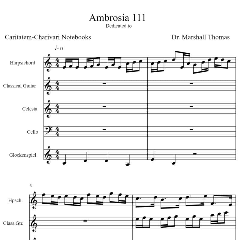 Ambrosia 111 for Harpsichord, Guitar, Cel., 'cello, Glock.