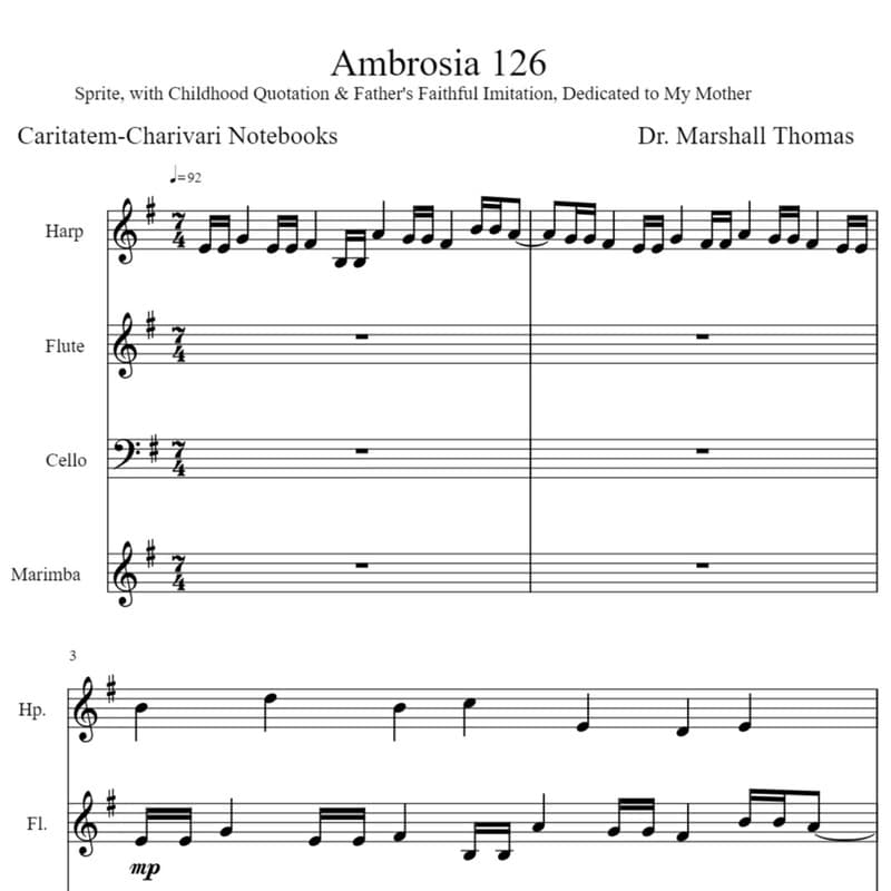 Ambrosia 126 for Harp, Flute, 'cello, Marimba