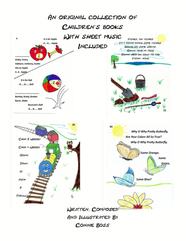 Choral Guitar,Piano,Vocal,Voice - Level 1 - Digital Download SKU: A0.801366 Composed by Connie Boss. Children,Instructional. Score. 73 pages. Connie Boss #5287705. Published by Connie Boss (A0.801366). This is a cute collection of 4 song that have books to go with it. You can sing the book to your child or read it. They are all original songs. I used to operate a daycare and came up with them while operating it. I love to illustrate also so I thought it would be cool to come up with a book. This product was created by a member of ArrangeMe, Hal Leonard's global self-publishing community of independent composers, arrangers, and songwriters. ArrangeMe allows for the publication of unique arrangements of popular titles and original compositions from a variety of voices and backgrounds. The length, difficulty, and retail pricing are determined solely by the discretion of the person who arranged or composed it. About Digital Downloads Digital Downloads are downloadable sheet music files that can be viewed directly on your computer, tablet or mobile device. Once you download your digital sheet music, you can view and print it at home, school, or anywhere you want to make music, and you don’t have to be connected to the internet. Just purchase, download and play! PLEASE NOTE: Your Digital Download will have a watermark at the bottom of each page that will include your name, purchase date and number of copies purchased. You are only authorized to print the number of copies that you have purchased. You may not digitally distribute or print more copies than purchased for use (i.e., you may not print or digitally distribute individual copies to friends or students).