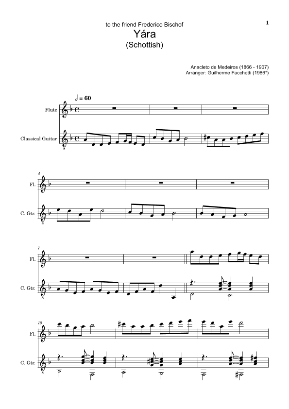Anacleto de Medeiros - Yára. Arrangement for Flute and Classical Guitar. Score and Separated Parts (arr. Guilherme Facchetti)