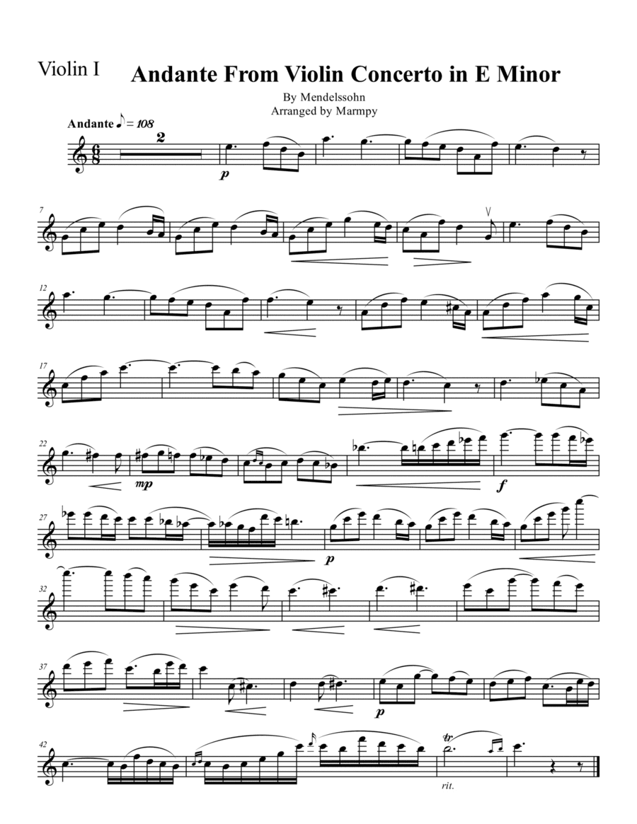 Andante from Violin Concerto in E Minor by Mendelssohn (arranged for String Quartet) (arr. Marmpy)