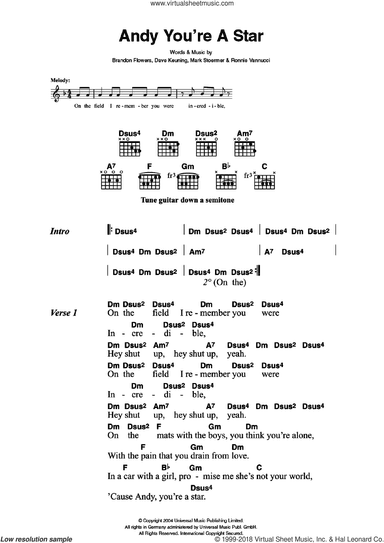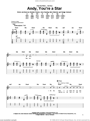 Digital Sheet Music for Andy, You're A Star by Brandon Flowers, Dave Keuning, The Killers, Mark Stoermer, Ronnie Vannucci Jr. scored for Guitar Tab; id:380368