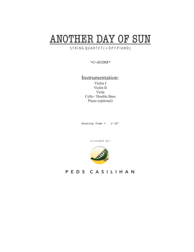 Instrumental Duet,Piano Cello,Instrumental Duet,Piano,Violin - Level 4 - Digital Download SKU: A0.1120687 Composed by Benj Pasek, Justin Hurwitz, and Justin Paul. Arranged by Oswin Carruido. Broadway,Contest,Festival,Film/TV,Jazz,Multicultural,Musical/Show,World. Score and parts. 16 pages. Oswin Carruido #721935. Published by Oswin Carruido (A0.1120687). A bold arrangement of this beloved sountrack for Violin, Cello and Piano. This product was created by a member of ArrangeMe, Hal Leonard's global self-publishing community of independent composers, arrangers, and songwriters. ArrangeMe allows for the publication of unique arrangements of popular titles and original compositions from a variety of voices and backgrounds. The length, difficulty, and retail pricing are determined solely by the discretion of the person who arranged or composed it. About Digital Downloads Digital Downloads are downloadable sheet music files that can be viewed directly on your computer, tablet or mobile device. Once you download your digital sheet music, you can view and print it at home, school, or anywhere you want to make music, and you don’t have to be connected to the internet. Just purchase, download and play! PLEASE NOTE: Your Digital Download will have a watermark at the bottom of each page that will include your name, purchase date and number of copies purchased. You are only authorized to print the number of copies that you have purchased. You may not digitally distribute or print more copies than purchased for use (i.e., you may not print or digitally distribute individual copies to friends or students).