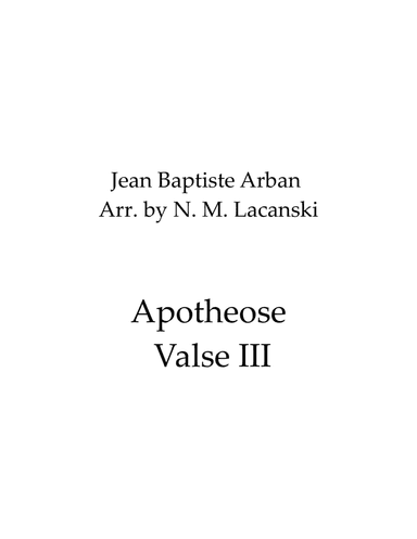 Clarinet,Piano - Level 3 - Digital Download SKU: A0.649876 Composed by Arban, Jean Baptiste. Arranged by Nick Lacanski. Concert,Instructional,Romantic Period,Standards. Score and part. 6 pages. Theupperstaff #6292711. Published by theupperstaff (A0.649876). This product was created by a member of ArrangeMe, Hal Leonard’s global self-publishing community of independent composers, arrangers, and songwriters. ArrangeMe allows for the publication of unique arrangements of both popular titles and original compositions from a wide variety of voices and backgrounds. About Digital Downloads Digital Downloads are downloadable sheet music files that can be viewed directly on your computer, tablet or mobile device. Once you download your digital sheet music, you can view and print it at home, school, or anywhere you want to make music, and you don’t have to be connected to the internet. Just purchase, download and play! PLEASE NOTE: Your Digital Download will have a watermark at the bottom of each page that will include your name, purchase date and number of copies purchased. You are only authorized to print the number of copies that you have purchased. You may not digitally distribute or print more copies than purchased for use (i.e., you may not print or digitally distribute individual copies to friends or students).