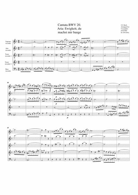 Aria: Ewigkeit, du machst mir bange from cantata BWV 20 (arrangement for 5 recorders) (arr. Gil Garty)