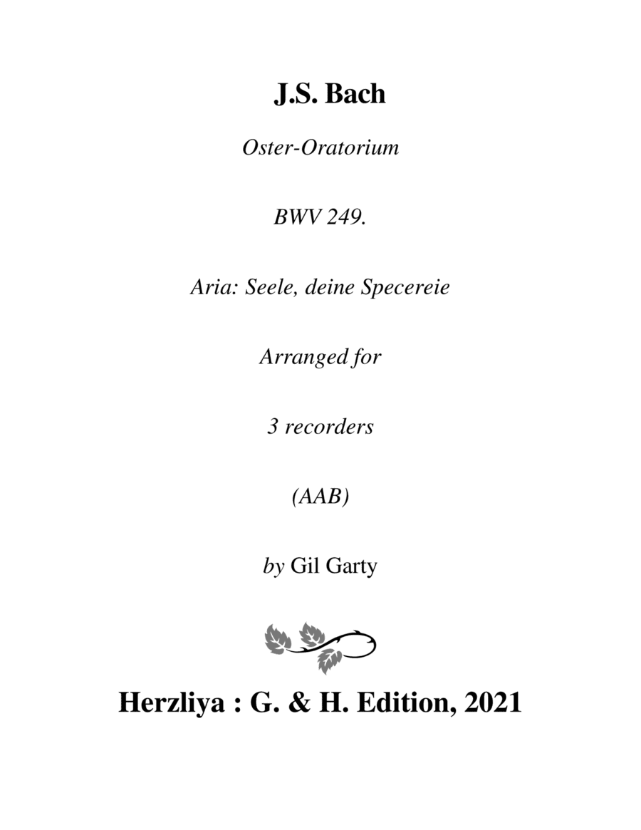 Aria: Seele, deine Specereie from Oster-Oratorium BWV 249 (arrangement for 3 recorders) (arr. Gil Garty)