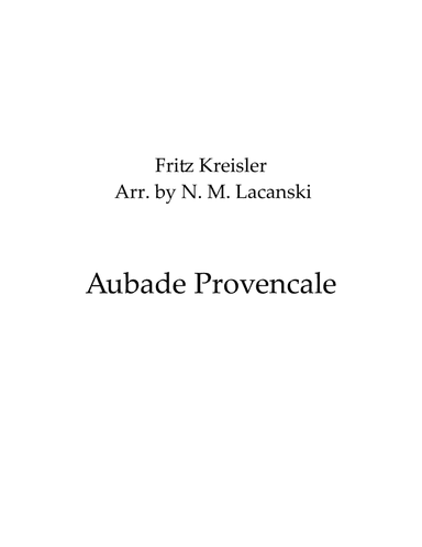 Piano,Violin - Level 3 - Digital Download SKU: A0.650773 Composed by Kreisler, Fritz. Arranged by Nick Lacanski. Concert,Instructional,Romantic Period,Standards. 8 pages. Theupperstaff #6706559. Published by theupperstaff (A0.650773). This product was created by a member of ArrangeMe, Hal Leonard’s global self-publishing community of independent composers, arrangers, and songwriters. ArrangeMe allows for the publication of unique arrangements of both popular titles and original compositions from a wide variety of voices and backgrounds. About Digital Downloads Digital Downloads are downloadable sheet music files that can be viewed directly on your computer, tablet or mobile device. Once you download your digital sheet music, you can view and print it at home, school, or anywhere you want to make music, and you don’t have to be connected to the internet. Just purchase, download and play! PLEASE NOTE: Your Digital Download will have a watermark at the bottom of each page that will include your name, purchase date and number of copies purchased. You are only authorized to print the number of copies that you have purchased. You may not digitally distribute or print more copies than purchased for use (i.e., you may not print or digitally distribute individual copies to friends or students).