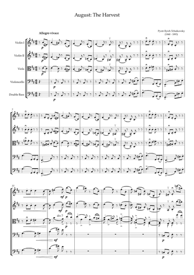 Piano/Keyboard - Intermediate - Digital Download SKU: 2S.4251133763768 The Seasons, Op. 37b, No. 8. Composed by Peter Ilyich Tchaikovsky. Classical Period. Score. 11 pages. Soundnotation #4251133763768. Published by Soundnotation (2S.4251133763768). About Digital Downloads Digital Downloads are downloadable sheet music files that can be viewed directly on your computer, tablet or mobile device. Once you download your digital sheet music, you can view and print it at home, school, or anywhere you want to make music, and you don’t have to be connected to the internet. Just purchase, download and play! PLEASE NOTE: Your Digital Download will have a watermark at the bottom of each page that will include your name, purchase date and number of copies purchased. You are only authorized to print the number of copies that you have purchased. You may not digitally distribute or print more copies than purchased for use (i.e., you may not print or digitally distribute individual copies to friends or students).