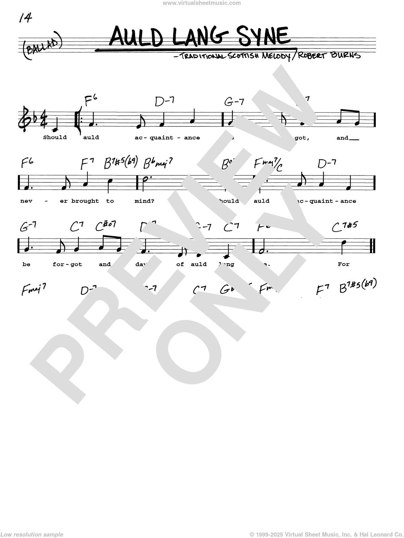 Digital sheet music for voice and other instruments, real book with lyricsNOTE: chords, lead sheet and lyrics included.Publisher: Hal LeonardContributors to this music title:Robert Burns (author)This item includes: PDF (digital sheet music to download and print)Instrumentation:voice and other instruments (real book with lyrics)Skill Level:intermediateGenre:holiday, winterPages:1