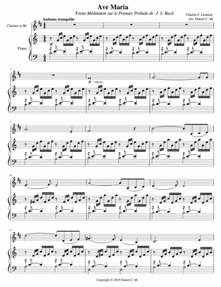 Ave Maria (Bach and Gounod) for B flat clarinet and piano (arr. Daniel C. M.)