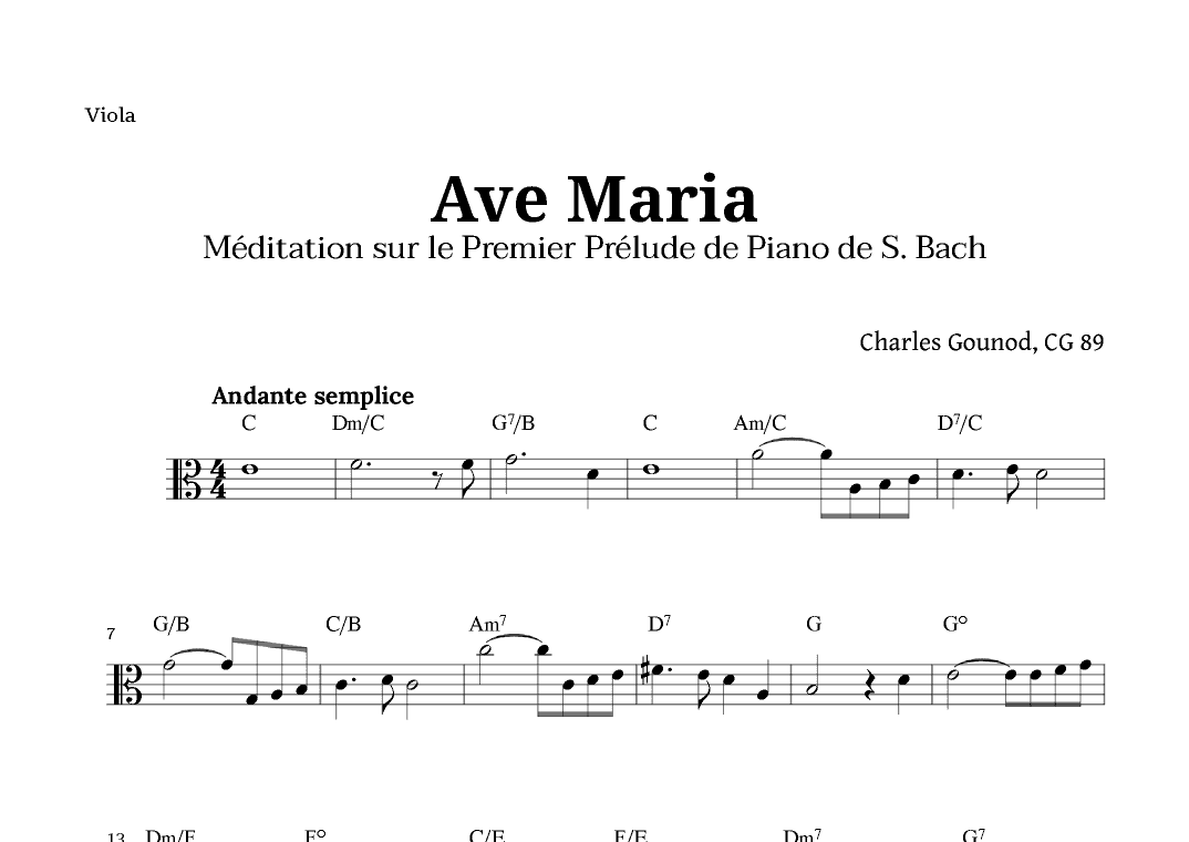 Ave Maria by Gounod for Viola with Chords (arr. Langanho)