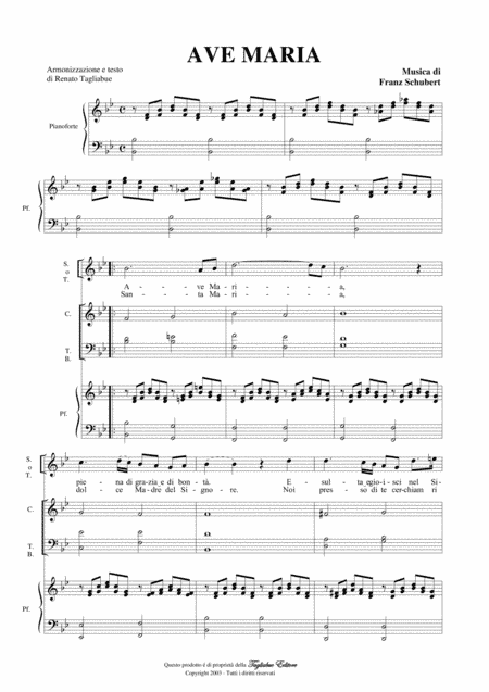 AVE MARIA by SCHUBERT - Arr. for Solo, Choir ATB and Piano/Organ (arr. R.Tagliabue)