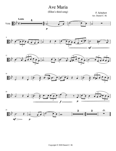 Ave Maria for viola and piano (simplified) (arr. Daniel C. M.)