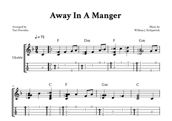 Away In A Manger - For Fingerstyle Ukulele (with TAB) (arr. Yuri Noronha)