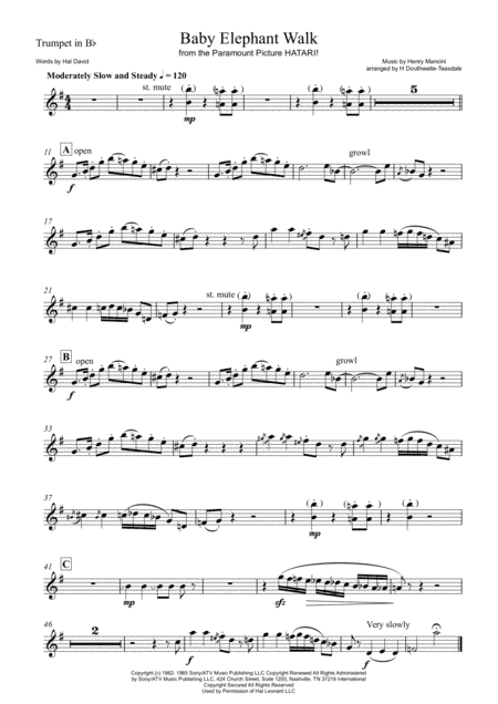 Baby Elephant Walk from the Paramount Picture HATARI! (arr. Helen Douthwaite-Teasdale)