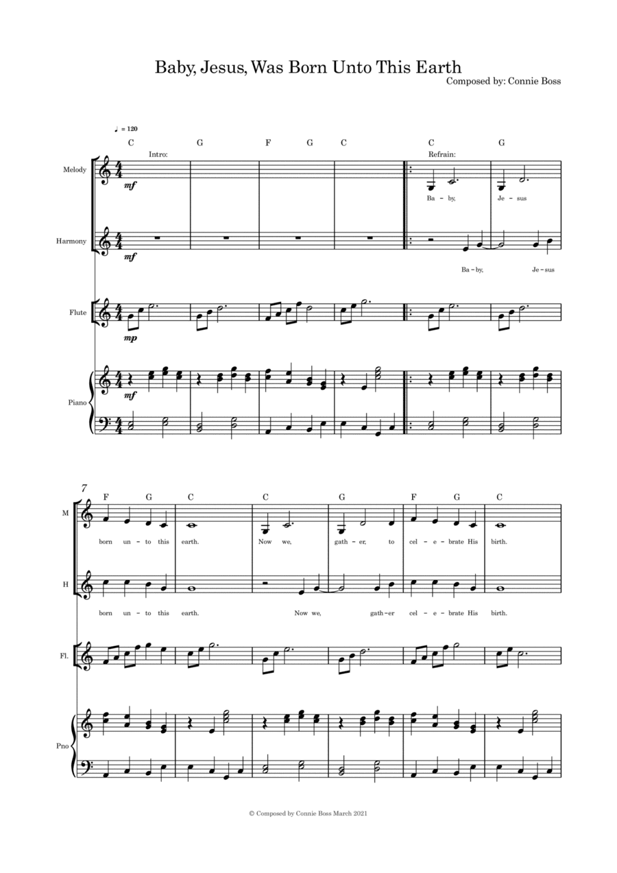 Baby, Jesus, Was Born Unto This Earth - duet flute and piano