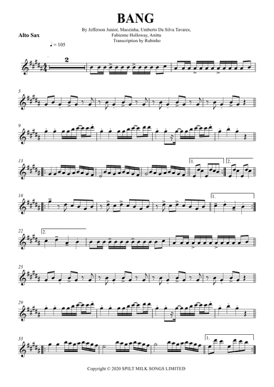 Tenor Saxophone Solo - Digital Download SKU: A0.506479 Composed by Anitta, Fabienne Holloway, Jefferson Junior, Maozinha, and Umberto Da Silva Tavares. Arranged by Rubinho. Hip-Hop,Pop,R & B. Individual part. 2 pages. Published by Rubinho (A0.506479). Tenor Sax Solo (Melody). This product was created by a member of ArrangeMe, Hal Leonard's global self-publishing community of independent composers, arrangers, and songwriters. ArrangeMe allows for the publication of unique arrangements of popular titles and original compositions from a variety of voices and backgrounds. The length, difficulty, and retail pricing are determined solely by the discretion of the person who arranged or composed it. About Digital Downloads Digital Downloads are downloadable sheet music files that can be viewed directly on your computer, tablet or mobile device. Once you download your digital sheet music, you can view and print it at home, school, or anywhere you want to make music, and you don’t have to be connected to the internet. Just purchase, download and play! PLEASE NOTE: Your Digital Download will have a watermark at the bottom of each page that will include your name, purchase date and number of copies purchased. You are only authorized to print the number of copies that you have purchased. You may not digitally distribute or print more copies than purchased for use (i.e., you may not print or digitally distribute individual copies to friends or students).
