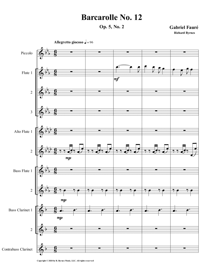 Barcarolle 12, Op. 105, No. 2 by Gabriel Fauré (Flute Octet + 2BCl,CbCl.) (arr. Richard Byrnes)