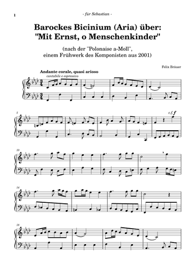 Instrumental Solo,Pipe Organ - Level 1 - Digital Download SKU: A0.1139385 Composed by Felix Bräuer. Advent,Baroque,Contemporary,Sacred,Traditional. Individual part. 2 pages. Felix Bräuer #739674. Published by Felix Bräuer (A0.1139385). This product was created by a member of ArrangeMe, Hal Leonard’s global self-publishing community of independent composers, arrangers, and songwriters. ArrangeMe allows for the publication of unique arrangements of both popular titles and original compositions from a wide variety of voices and backgrounds. About Digital Downloads Digital Downloads are downloadable sheet music files that can be viewed directly on your computer, tablet or mobile device. Once you download your digital sheet music, you can view and print it at home, school, or anywhere you want to make music, and you don’t have to be connected to the internet. Just purchase, download and play! PLEASE NOTE: Your Digital Download will have a watermark at the bottom of each page that will include your name, purchase date and number of copies purchased. You are only authorized to print the number of copies that you have purchased. You may not digitally distribute or print more copies than purchased for use (i.e., you may not print or digitally distribute individual copies to friends or students).
