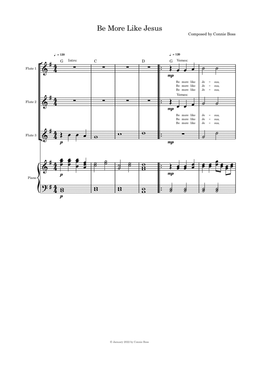 Be More Like Jesus - (Lent/Good Friday) flute trio and piano