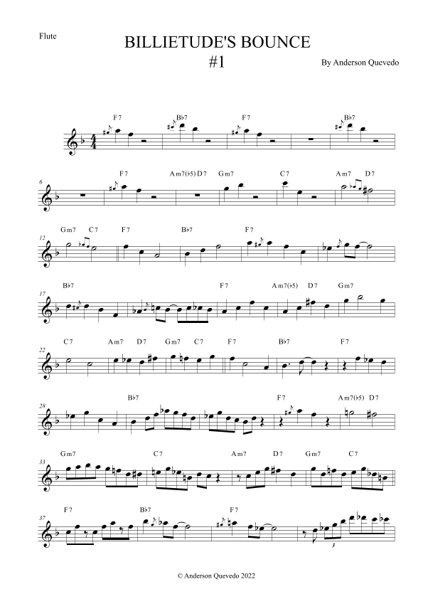 Billietude's Bounce #1 for Flute  - Easy Intermediate Blues/Jazz Original Etude