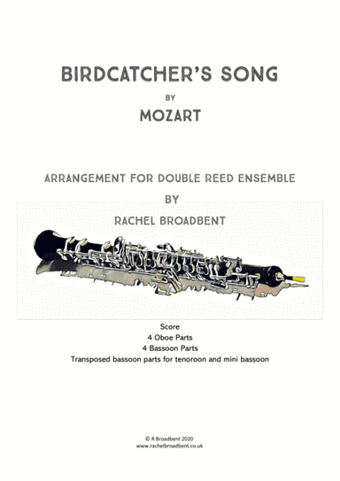 Small Ensemble - Level 3 - Digital Download SKU: A0.1008520 Composed by Wolfgang Amadeus Mozart. Arranged by R. Broadbent. Classical. Score and parts. 24 pages. Rachel Broadbent RBOboeEdition #6036559. Published by Rachel Broadbent RBOboeEdition (A0.1008520). This is an arrangement for players grade 3 and above and perfect for school age double reed ensembles. All the bassoon parts have alternative transposed versions for tenoroon or mini bassoon. This product was created by a member of ArrangeMe, Hal Leonard’s global self-publishing community of independent composers, arrangers, and songwriters. ArrangeMe allows for the publication of unique arrangements of both popular titles and original compositions from a wide variety of voices and backgrounds. About Digital Downloads Digital Downloads are downloadable sheet music files that can be viewed directly on your computer, tablet or mobile device. Once you download your digital sheet music, you can view and print it at home, school, or anywhere you want to make music, and you don’t have to be connected to the internet. Just purchase, download and play! PLEASE NOTE: Your Digital Download will have a watermark at the bottom of each page that will include your name, purchase date and number of copies purchased. You are only authorized to print the number of copies that you have purchased. You may not digitally distribute or print more copies than purchased for use (i.e., you may not print or digitally distribute individual copies to friends or students).