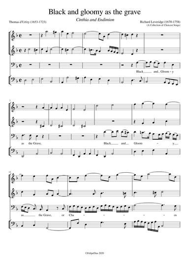 Baritone Horn TC,Basso Continuo,Trumpet,Violin - Digital Download SKU: A0.791911 Composed by Richard Leveridge. Arranged by Early Music Scores. Early Music. 10 pages. Early Music Scores #6717431. Published by Early Music Scores (A0.791911). Bass voice, two treble instruments, trumpet and continuoComposed by Richard Leveridge (1670 - 1758). From Cinthia and Endimion. Edited by Felipe Dias. 10 pages. This product was created by a member of ArrangeMe, Hal Leonard’s global self-publishing community of independent composers, arrangers, and songwriters. ArrangeMe allows for the publication of unique arrangements of both popular titles and original compositions from a wide variety of voices and backgrounds. About Digital Downloads Digital Downloads are downloadable sheet music files that can be viewed directly on your computer, tablet or mobile device. Once you download your digital sheet music, you can view and print it at home, school, or anywhere you want to make music, and you don’t have to be connected to the internet. Just purchase, download and play! PLEASE NOTE: Your Digital Download will have a watermark at the bottom of each page that will include your name, purchase date and number of copies purchased. You are only authorized to print the number of copies that you have purchased. You may not digitally distribute or print more copies than purchased for use (i.e., you may not print or digitally distribute individual copies to friends or students).