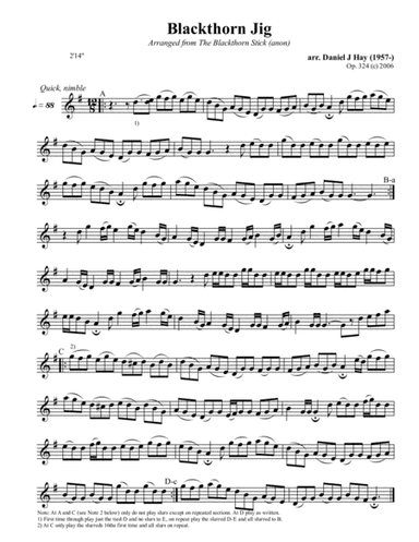 Recorder Solo,Tenor Recorder - Level 3 - Digital Download SKU: A0.596438 Composed by Anon. Arranged by Daniel Hay. Folk. Individual part. 1 pages. Daniel Hay Music #5771901. Published by Daniel Hay Music (A0.596438). Arranged from The Blackthorn Stick (anon.) by composer Daniel Hay for recital. For Soprano or Tenor Recorder. Fun with Oboe, Clarinet or Flute. This product was created by a member of ArrangeMe, Hal Leonard's global self-publishing community of independent composers, arrangers, and songwriters. ArrangeMe allows for the publication of unique arrangements of popular titles and original compositions from a variety of voices and backgrounds. The length, difficulty, and retail pricing are determined solely by the discretion of the person who arranged or composed it. About Digital Downloads Digital Downloads are downloadable sheet music files that can be viewed directly on your computer, tablet or mobile device. Once you download your digital sheet music, you can view and print it at home, school, or anywhere you want to make music, and you don’t have to be connected to the internet. Just purchase, download and play! PLEASE NOTE: Your Digital Download will have a watermark at the bottom of each page that will include your name, purchase date and number of copies purchased. You are only authorized to print the number of copies that you have purchased. You may not digitally distribute or print more copies than purchased for use (i.e., you may not print or digitally distribute individual copies to friends or students).