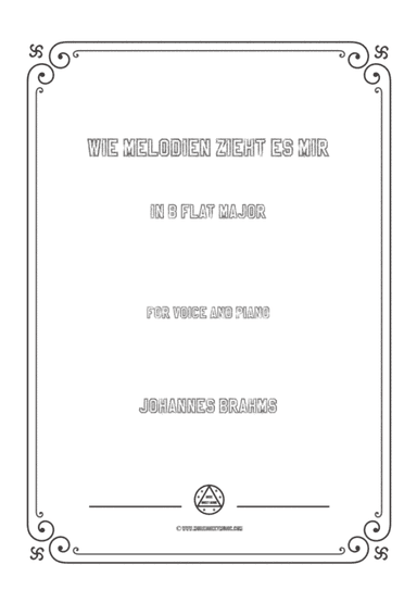 Piano,Vocal,Voice - Level 3 - Digital Download SKU: A0.660220 Composed by Johannes Brahms. Arranged by MSM. Classical,Romantic Period. Score. 8 pages. Open Cloud #3913789. Published by Open Cloud (A0.660220). This product(include full and parts score) is a digital sheet music in PDF format. The music was composed by Brahms (Johannes Brahms), 1833-1897,for Voice and Piano, published by More Sheet Music Press. This product was created by a member of ArrangeMe, Hal Leonard's global self-publishing community of independent composers, arrangers, and songwriters. ArrangeMe allows for the publication of unique arrangements of popular titles and original compositions from a variety of voices and backgrounds. The length, difficulty, and retail pricing are determined solely by the discretion of the person who arranged or composed it. About Digital Downloads Digital Downloads are downloadable sheet music files that can be viewed directly on your computer, tablet or mobile device. Once you download your digital sheet music, you can view and print it at home, school, or anywhere you want to make music, and you don’t have to be connected to the internet. Just purchase, download and play! PLEASE NOTE: Your Digital Download will have a watermark at the bottom of each page that will include your name, purchase date and number of copies purchased. You are only authorized to print the number of copies that you have purchased. You may not digitally distribute or print more copies than purchased for use (i.e., you may not print or digitally distribute individual copies to friends or students).