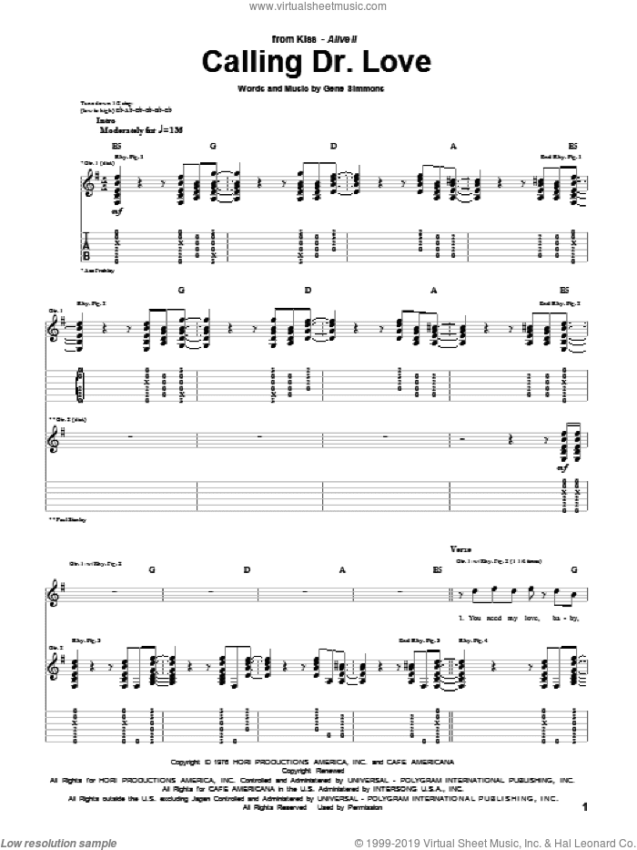 Digital sheet music for guitar (tablature), version 2NOTE: tablature included, lyrics may be included (please, check the first page above before to buy this item to see what's included)Publisher: Hal LeonardContributors to this music title:Gene Simmons (writer)This item includes: PDF (digital sheet music to download and print)Instrumentation:guitar (tablature)Skill Level:intermediateGenre:metal, pop, rockPages:6