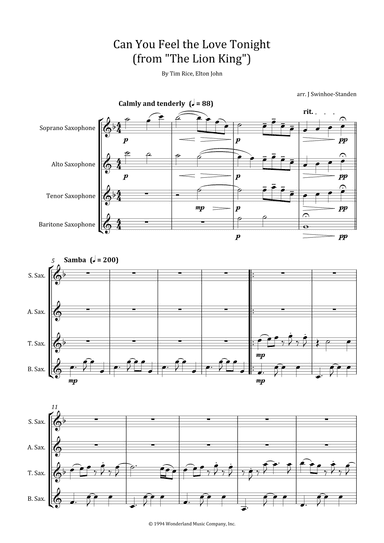 Can You Feel The Love Tonight (arr. J Swinhoe-Standen)