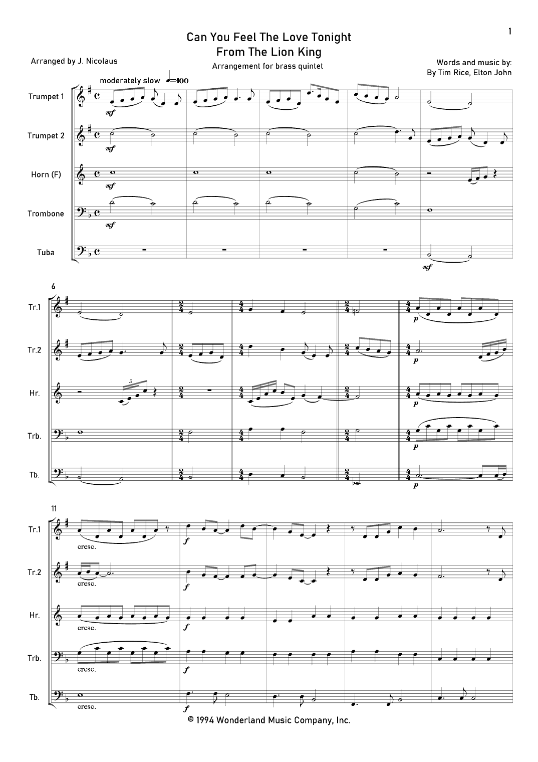 Can You Feel The Love Tonight (arr. John Nicolaus)